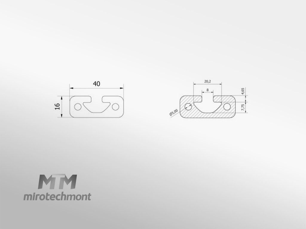 Konstrukční modulární hliníkový profil 16x40 I8 Hliníkový profil 16x40, pro stavebnicový systém je vhodný pro stavbu zábradlí, vidících lišt pro gravitační regály, dopravníky a pod