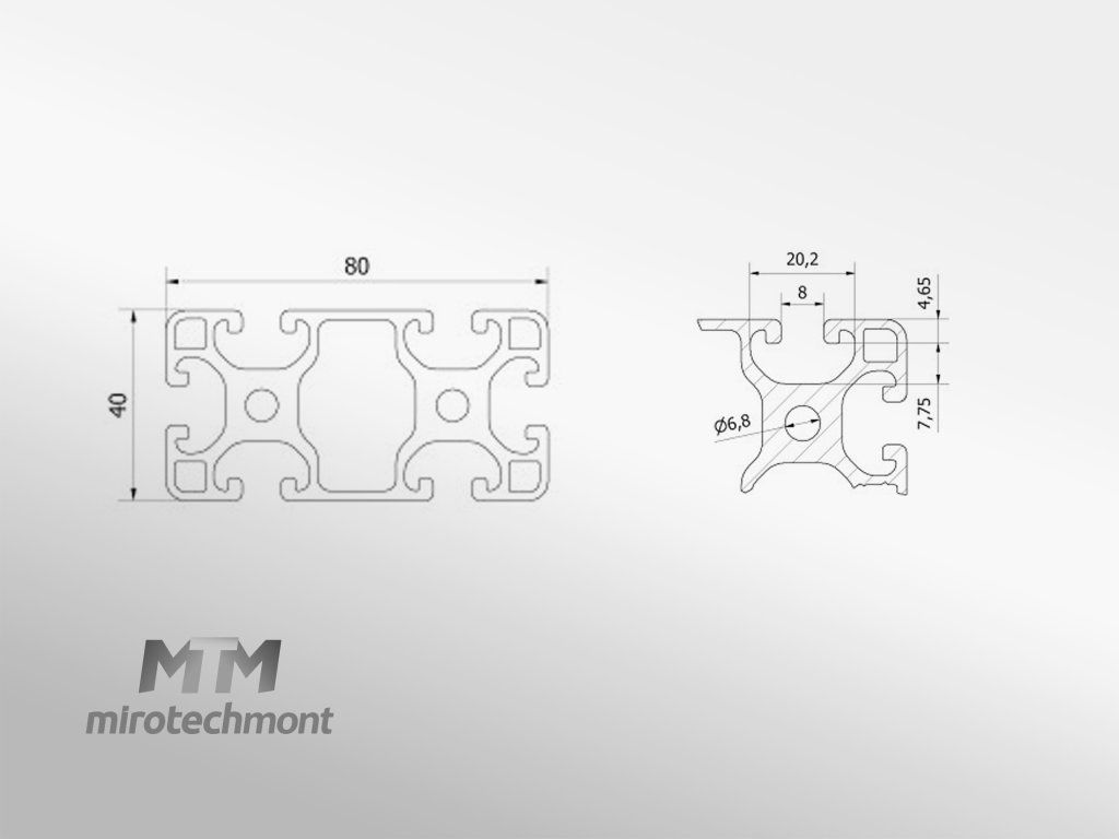 Konstrukční modulární hliníkový profil lehký 40x80 I8