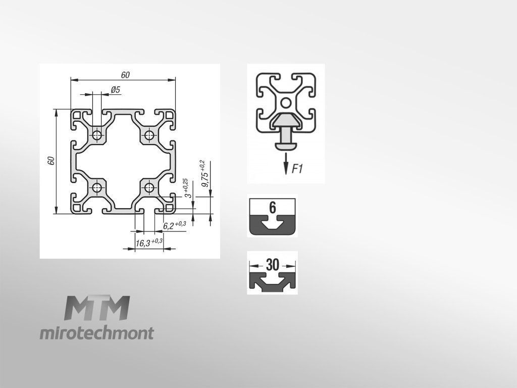 Konstrukční modulární hliníkový profil lehký 60x60