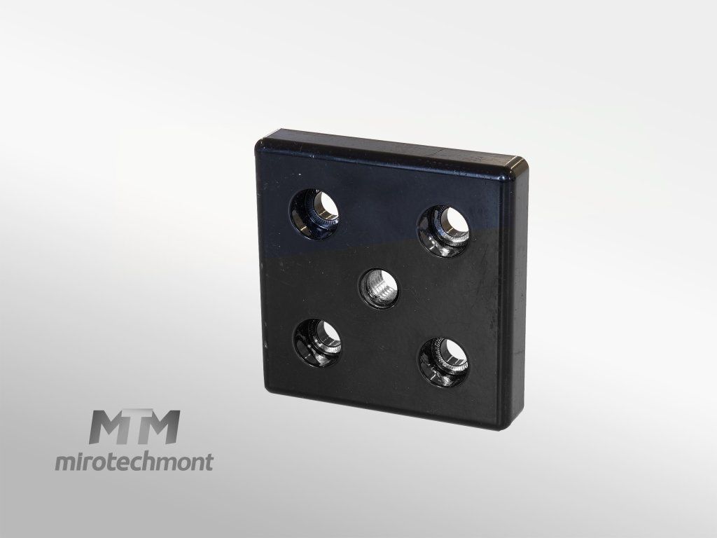 Pro montáž nivelačních nožiček, válečků, háků nebo podobných součástí; připojuje se k profilu bočně