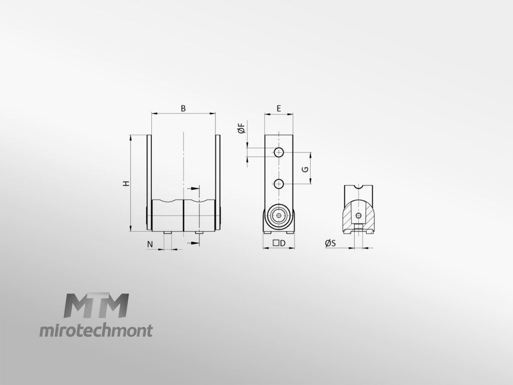 | H (mm) | D (mm) | Slot N (mm) | ØF (mm) | E (mm) | B (mm) | ØS (mm) | Mřížka | G (mm) |