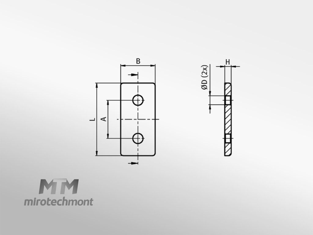 Informace o produktu "Spojovací deska AL obdélníková verze s 2 otvory, 1 otvorem"