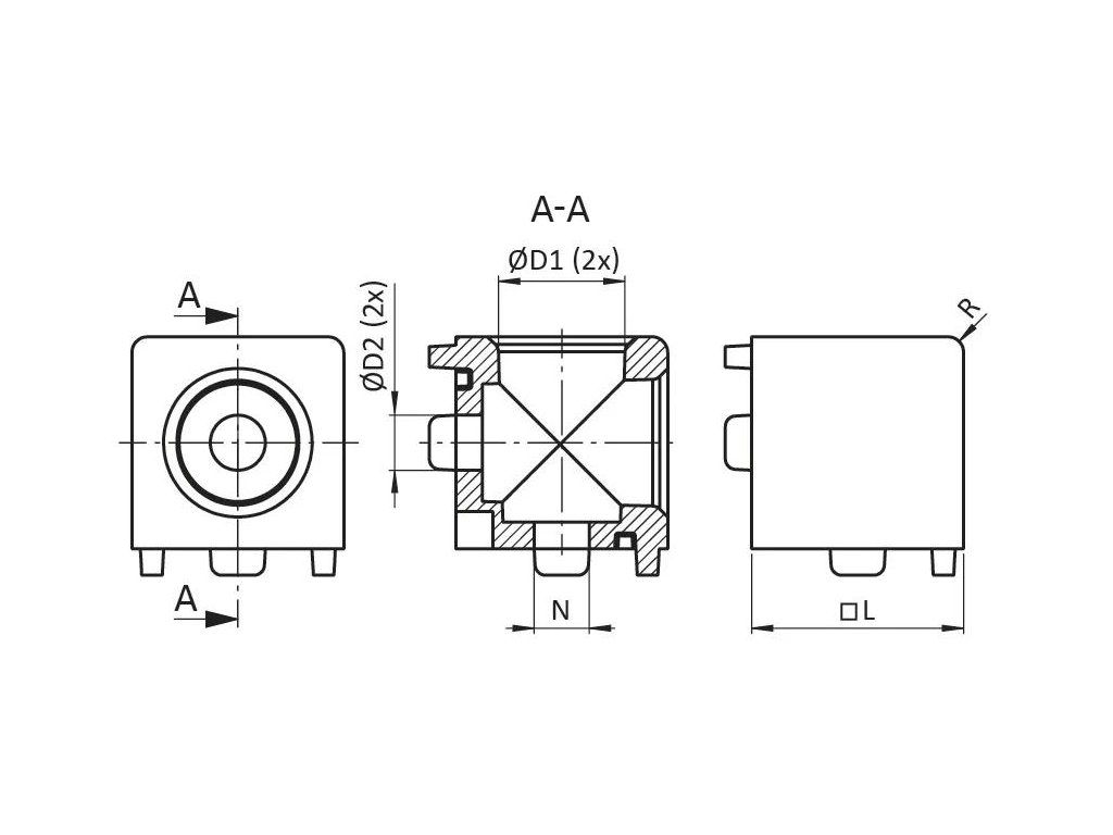 Pro propojení dvou hliníkových profilů pod kolmým úhlem; s kryty pro zakrytí vrtání