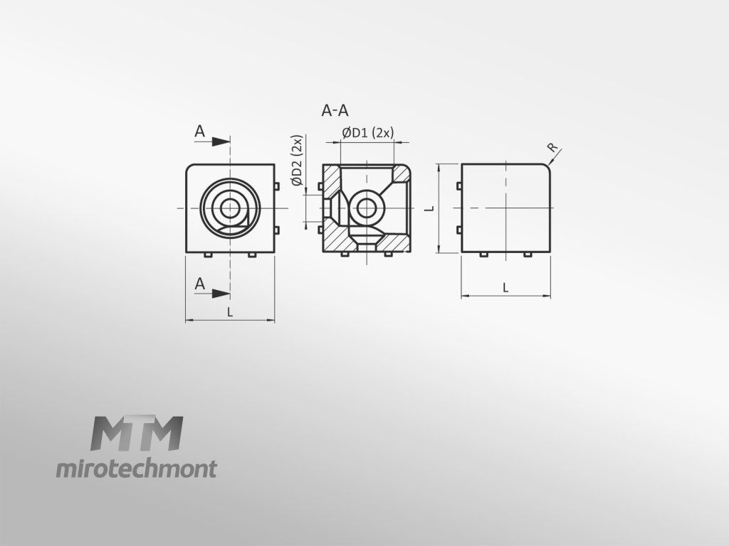 Pro spojení dvou hliníkových profilů pod pravým úhlem; s kryty pro zakrytí vrtání