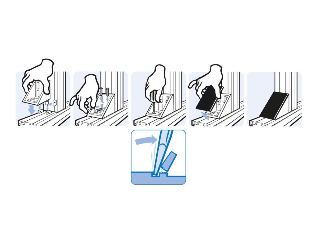Pro propojení dvou hliníkových profilů nebo panelů pod kolmým úhlem; úhel spojení lze uzavřít krytem