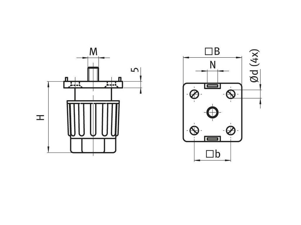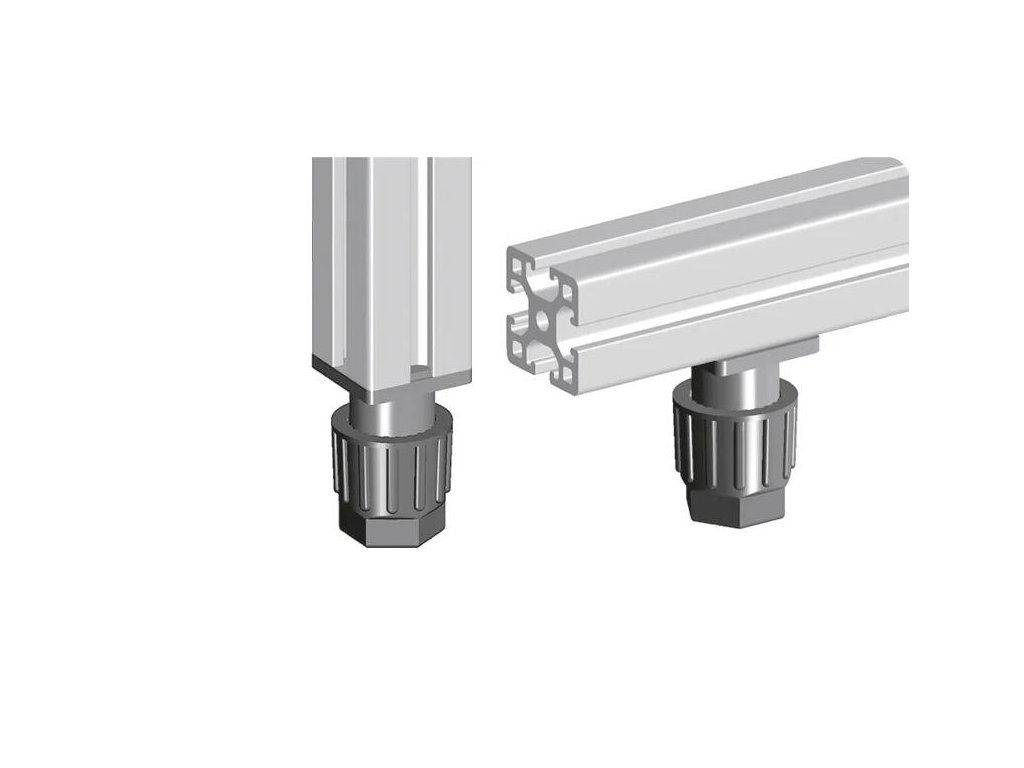 Vyrovnávací patka pro upevnění na hliníkové profily, výškově nastavitelná bez použití nářadí
